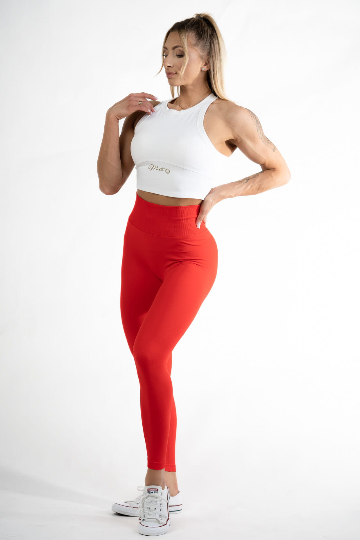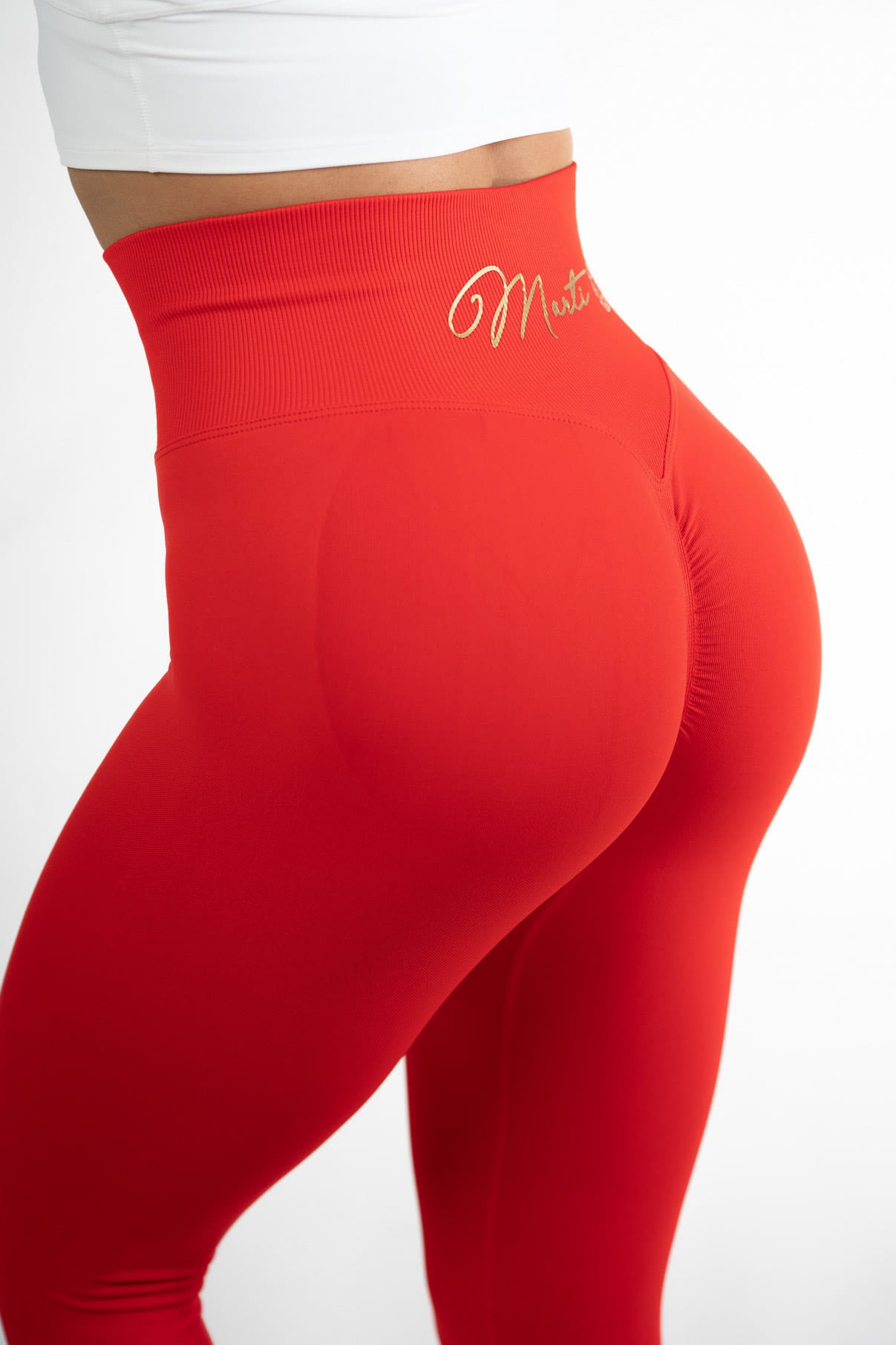 Wysoki pas podkreśla i trzyma talie, dzięki czemu nie zsuwają się podczas aktywności nawet przy najcięższych treningach.