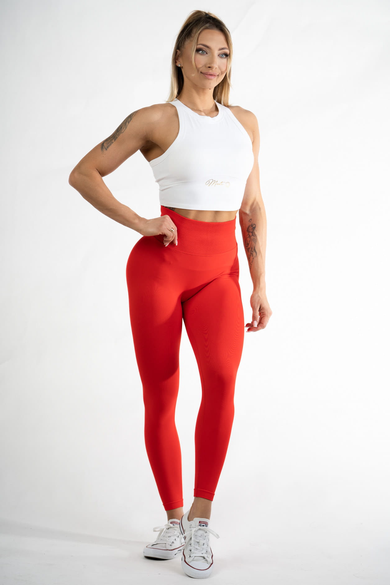 Gładkie Legginsy Bezszwowe push-up Czerwone