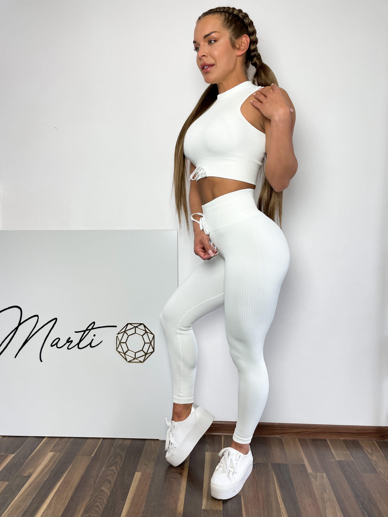 Przód topu zdobi ozdobne wiązanie i białe logo Marti, wewnątrz umieszczone są wkładki, które możesz wyciągnąć.