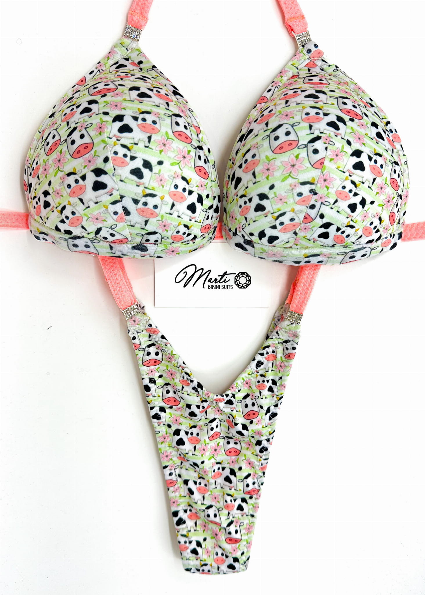 Bikini szyte ręcznie z pięknej lajkry we wzorki. Idealne do pozowania dla zawodniczek szykujących się na zawody fitness jak i na basen.